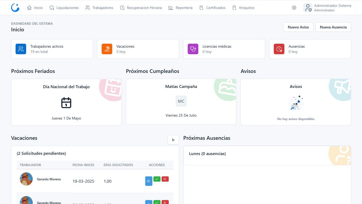Interfaz sencilla y profesional, diseñada para facilitar la gestión de sueldos, beneficios y recursos humanos.